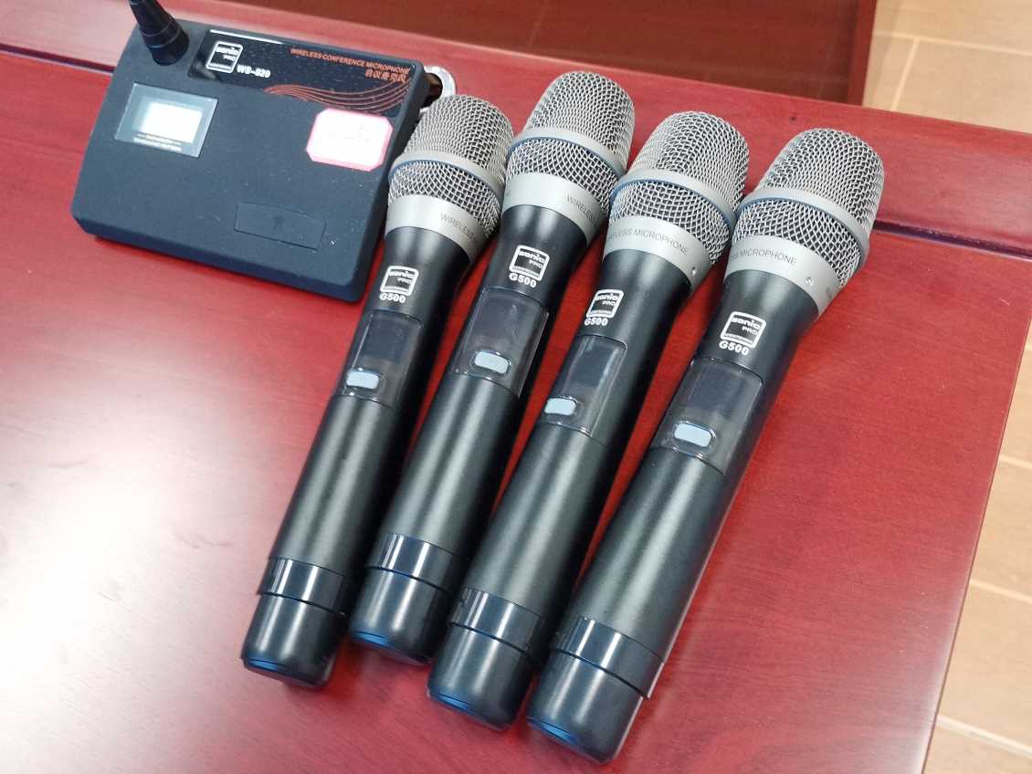 我们配置了四套八只无线鹅颈陕西话筒,为了满足流动发言的使用需求,配置了两套一拖二的无线手持话筒。满足各类会议报告的使用需求。