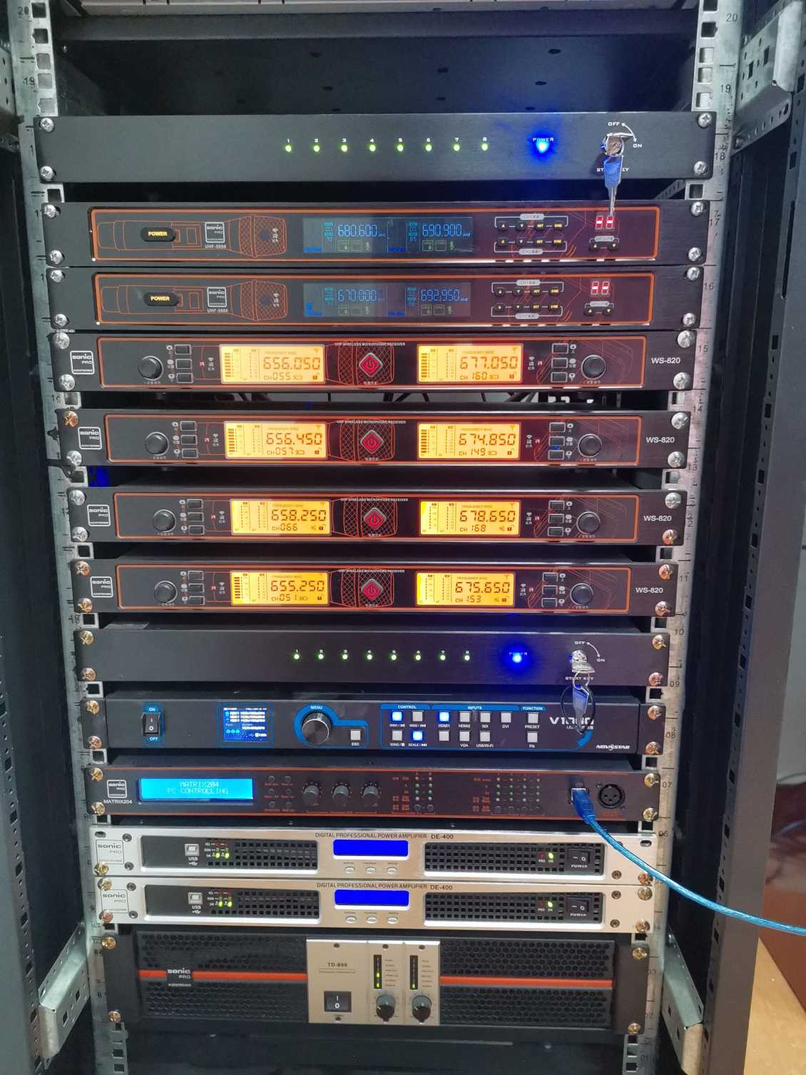 我们配置了功放、数字音频矩阵处理器等一整套完善的音响系统。