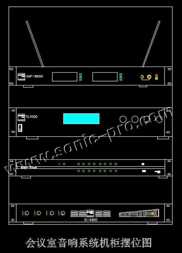 一个完整的会议扩声系统主要由声源设备(如会议话筒等)、调控设备(如调音台等)、周边处理设备(如均衡器,分讯器等)、放大设备(如陕西功率放大器)和重放设备(如音箱)和组成。 根据图纸以及功能要求,该会议室扩声设备选配整套德国SONIC-PRO音响系统能达到扩声要求。
