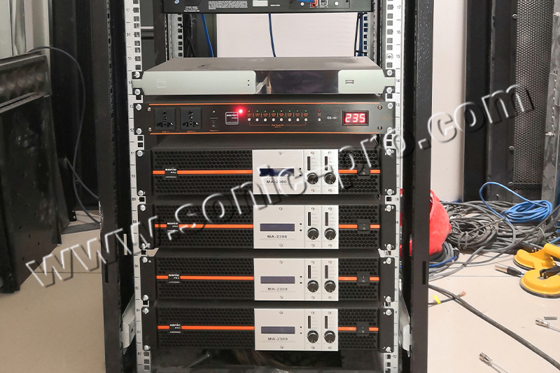处理器采用无旋钮具有前级放大且带有强大DSP处理,输入具有噪声门可以背景噪声,发言时的呼吸声过滤掉,输入输出带有均衡器。除此之外音频矩阵处理器支持和功放和电源时序器的联动控制,可以无线控制它们的开关机、音量和场景模式。