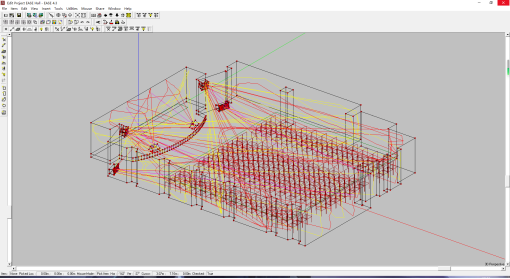 为了达到并超过相关国家标准的技术指标,我们借助先进的计算机声场模拟软件EASE 4.3根据报告厅的实际尺寸对音响系统的扩声效果进行了模拟计算。EASE4.3声场模拟软件是由德国ADA声学设计公司研制开发的,已经得到广泛推广和应用。EASE声学模拟软件可调用(借助)AUTOCAD建立三维空间模型,进行设计、编辑和方案修改;利用其内置的可听化模拟软件模块,使用模拟计算的脉冲响应与音乐信号,通过外耳传输函数,使设计师能够听到实际的音响效果,以便修改。