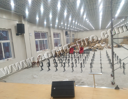舞台区域,我们设计了2只12寸的专业返听音箱,保证发言人和歌手能清晰的听见自己的声音和音乐伴奏。
