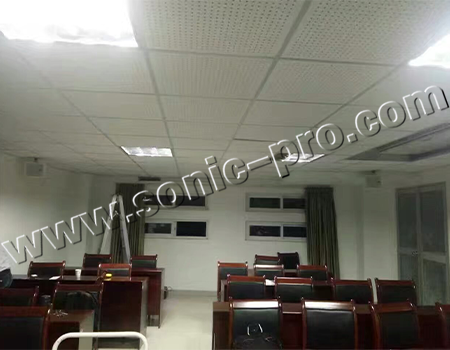 该会议室使用SONIC PRO 经典之TZ-6同轴音箱4只,同轴音箱采用点声源同轴技术,具有完全的波阵面相干性和轴对称方向性,产生完全相同的水平和垂直覆盖角度,形成真正的“点声源;避免了传统的号筒高音和低频扬声器单元组合来说典型极性波瓣效应的弱点,最终的结果自然是带来录音棚级的监听音质。