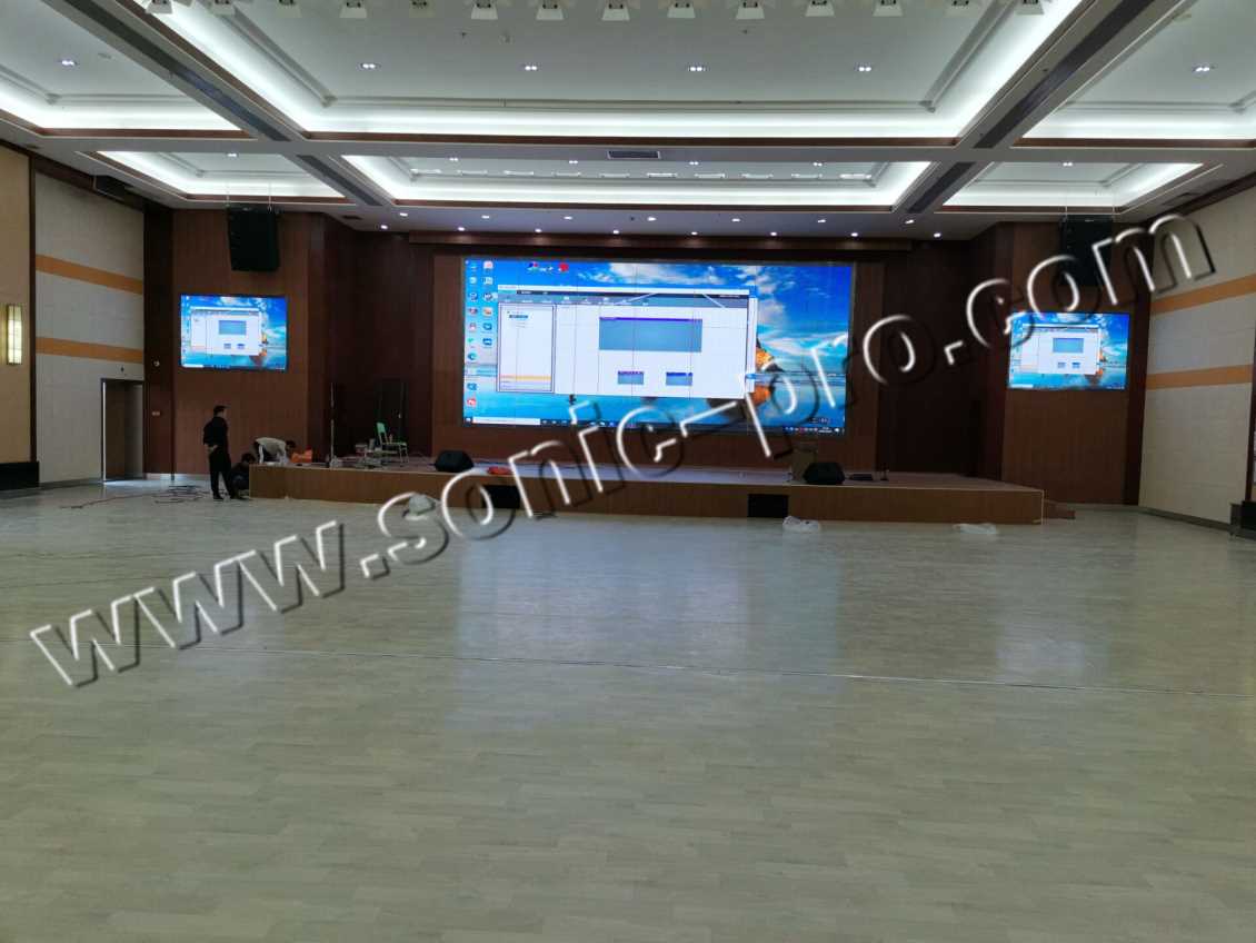 报告厅使用特点是,面积较大,需要实现远距离,大声压的扩声,因此我们配置了左右主扩声陕西音箱,一边采用四只线性阵列音箱,高品质的喇叭单元配置,提供高音顺滑,中音通透,低音饱满的扩声。