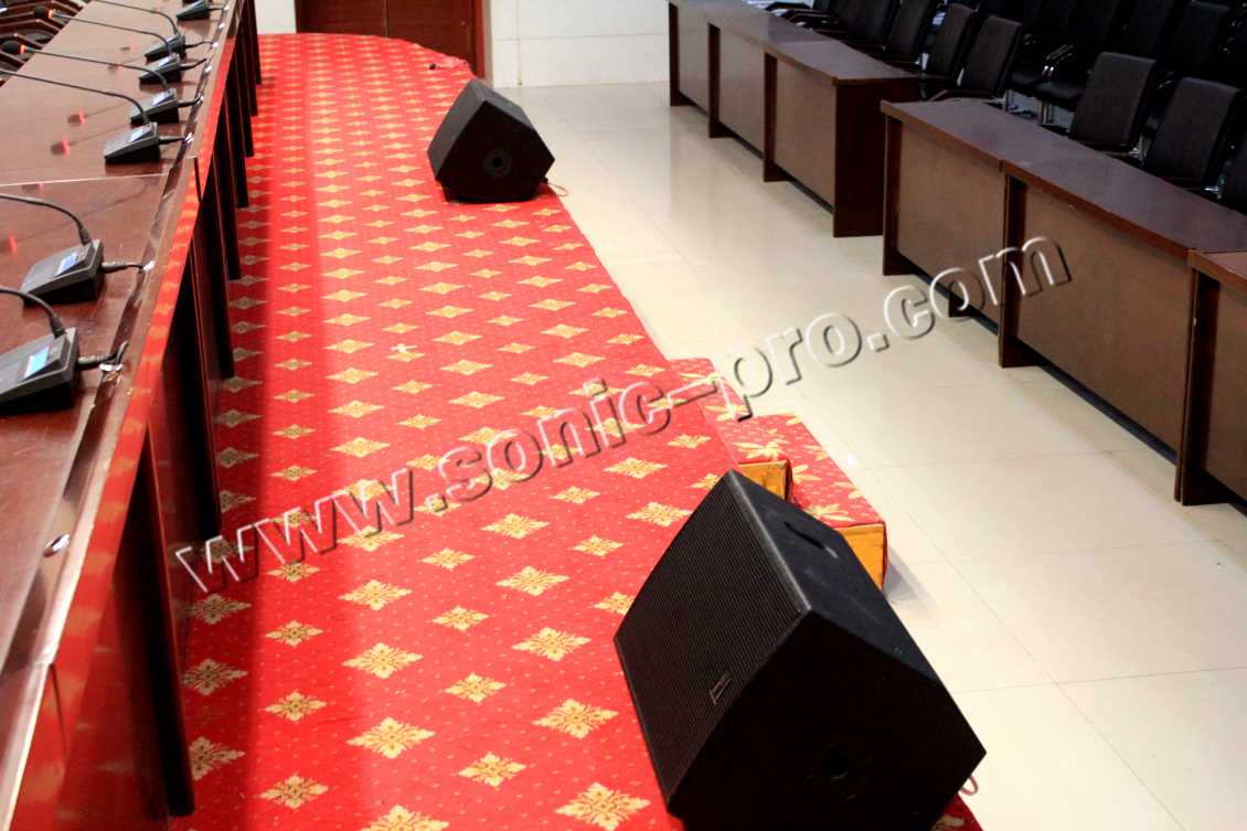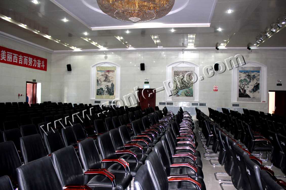大会议室需要满足会议、演出的要求,所以采用极具技术代表性的TZ系列同轴陕西音箱,主扩声为两只TZ-18同轴全频音箱,保障了全场的大声压级,