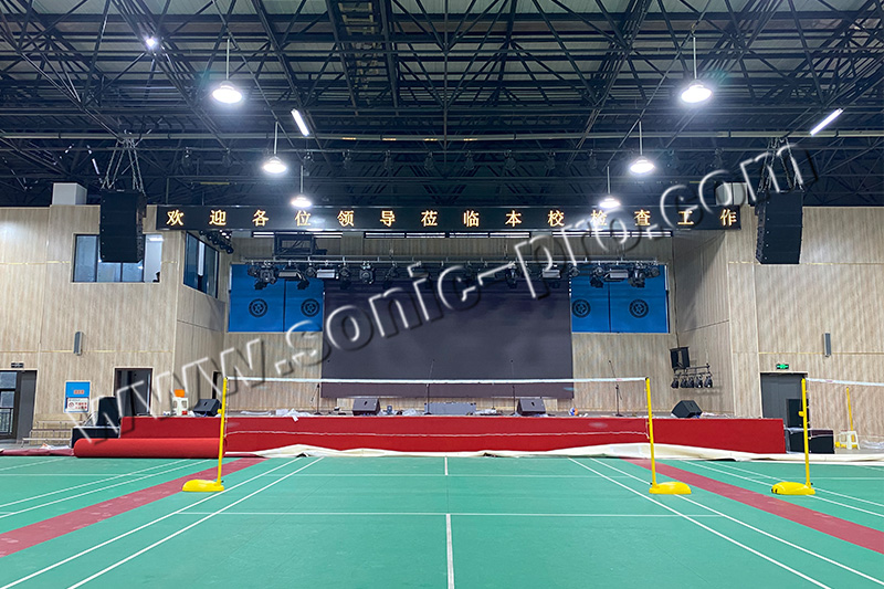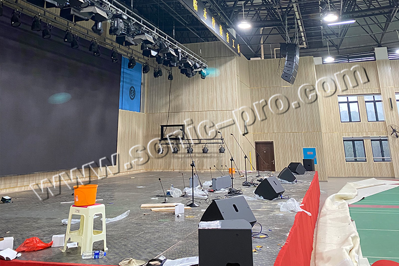 该校体育馆方案设计。体育馆主要用于体育比赛和文艺演出等,考虑到体育馆作为一个较为人多且空旷的场所,甲方要求陕西会议系统需要做到声音清晰、柔和、音质优良、观众席上有足够的响度,声音应覆盖整个观众席和表演场地,使声场均匀,系统有足够的稳定度。
