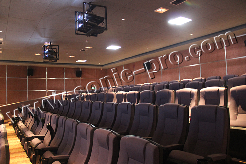 五彩大地3D影院扩声系统由SONIC PRO音响全力打造,陕西音箱全部采用MS系列影院音箱,在该扩声系统中配置了3只双15寸内置二分频影院主音箱(MS-157)作为左中右声道扬声器,选用8只8寸音箱(MS-08R)作为影院环绕声道扬声器,同时,选用2只18寸影院次低音箱(MS-18)来播放电影中低音声道的信号。该系列音箱是专门针对影院、礼堂而量身定制的高水准固定安装专业影院扩声系统,MS系列提供了广泛覆盖角度及平滑的高频响应。通过搭配使用,搭建出5.1、7.1专业还音系统、从而引领观众身临其境般地进入电影情节中。专业设计的箱体提供了可扩展的低频相应,分频点调教使其能在整体频率范围内提供更广泛的覆盖;高输出的驱动器和号角能使声音能够清晰地传达到每一座位。MS系列确保在整个中高频长期最大声压级的情况下纯净、自然、水晶般清澈透明的音色。 鄢陵五彩大地3D影院试业和正式营业期间,其放映和音响效果均获得使用方和影迷们的一致好评。