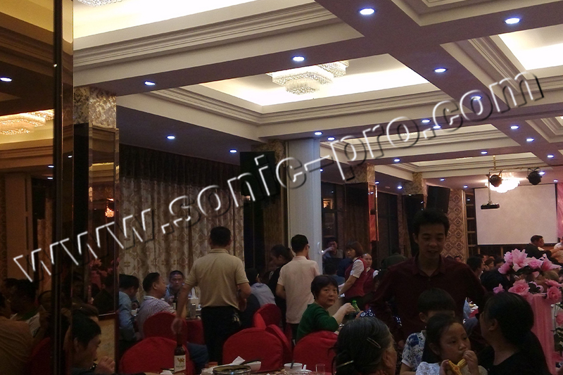 福建南平新龙凤大酒楼,是一家拥有独具特色的餐厅、宴会厅、餐饮包厢,有丰盛的中华传统美食、地方特色名菜,内设有宴会大厅。宽敞喜庆,为市区规模喜宴争相预订的酒楼之一。此次大厅的扩声系统由SONIC PRO音响全力打造,采用K系列