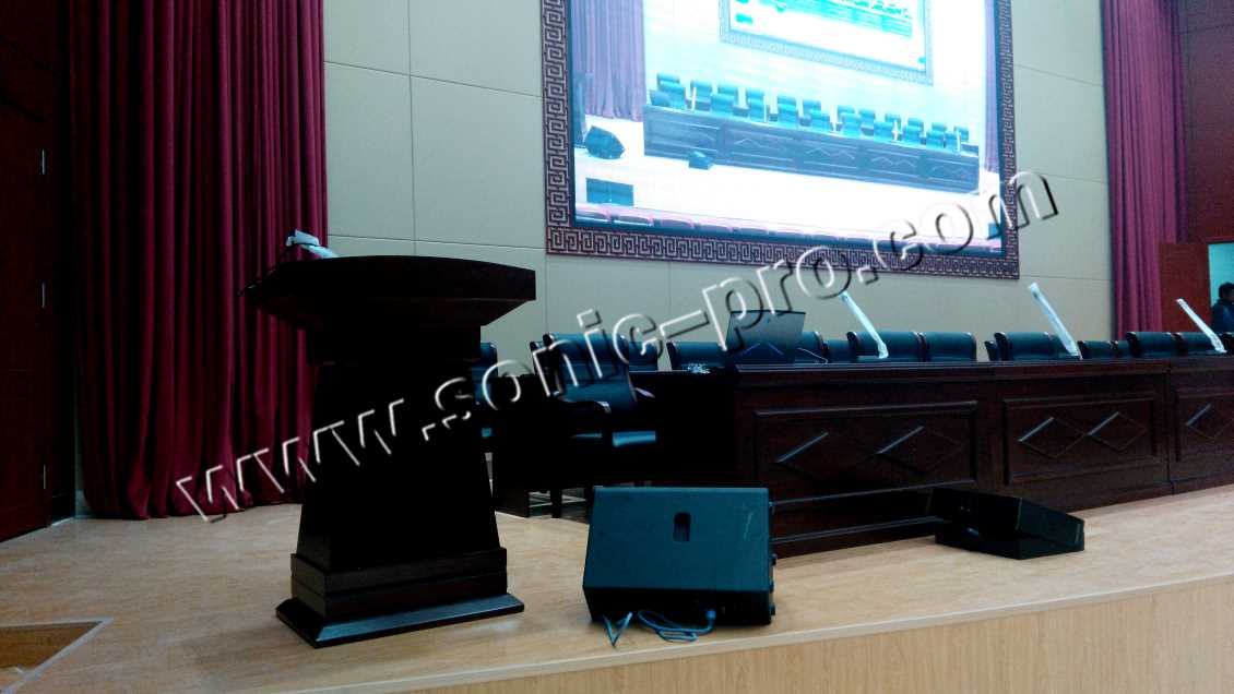 功放采用D系列数字功放。音源部分配置了陕西无线话筒(UHF-1000)及讨论型陕西会议系统(TL1000)。