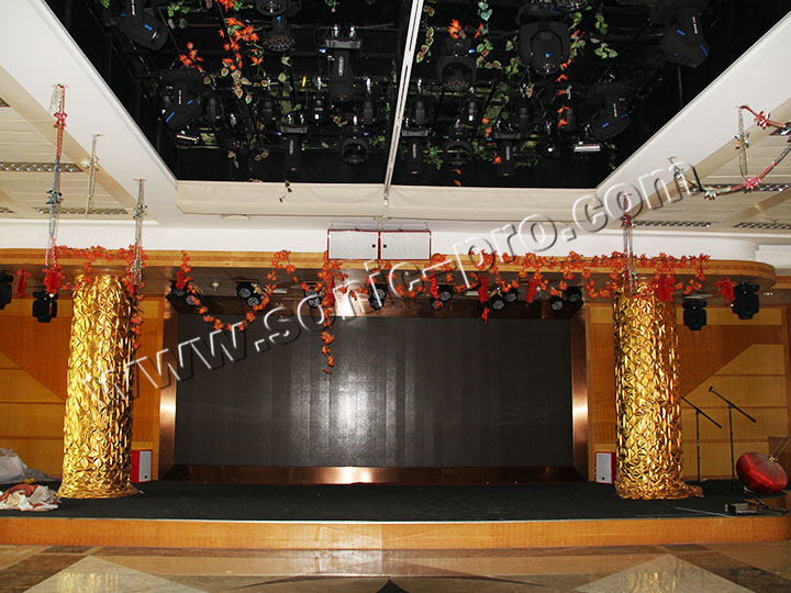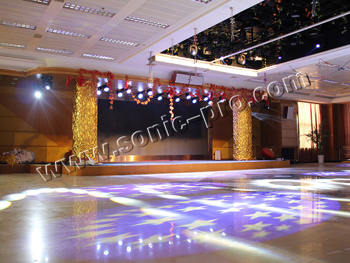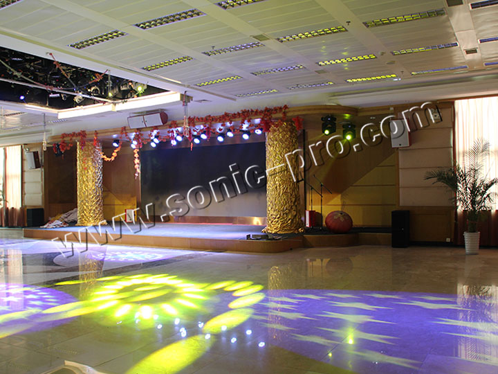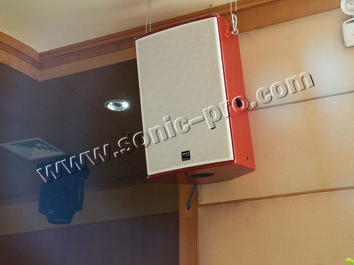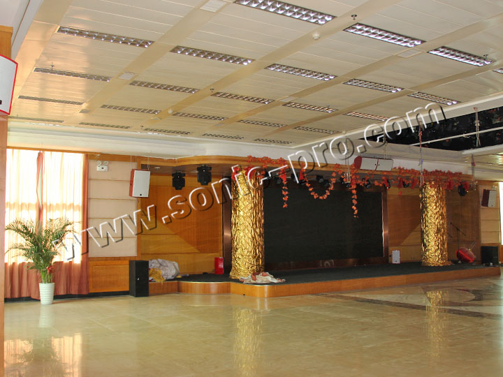 陕西报告厅音响系统全部采用SONIC PRO(斯尼克)音响产品,为保障整个多功能厅的总声压级,主扩音箱采用2只全频音箱(CO-15X);