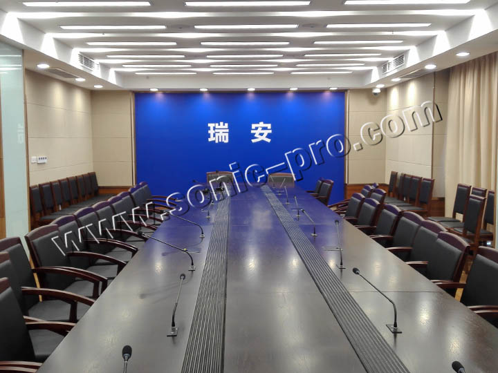 此次温州市瑞安防汛指挥部扩声部分全部采用SONIC PRO(斯尼克)音响产品,为保障整个会议室声压级,