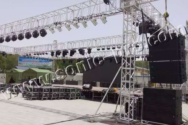 活动现场扩声系统全部采用我司SONIC PRO音响产品,主扩声为采用进口钕铁硼单元的双12寸线性