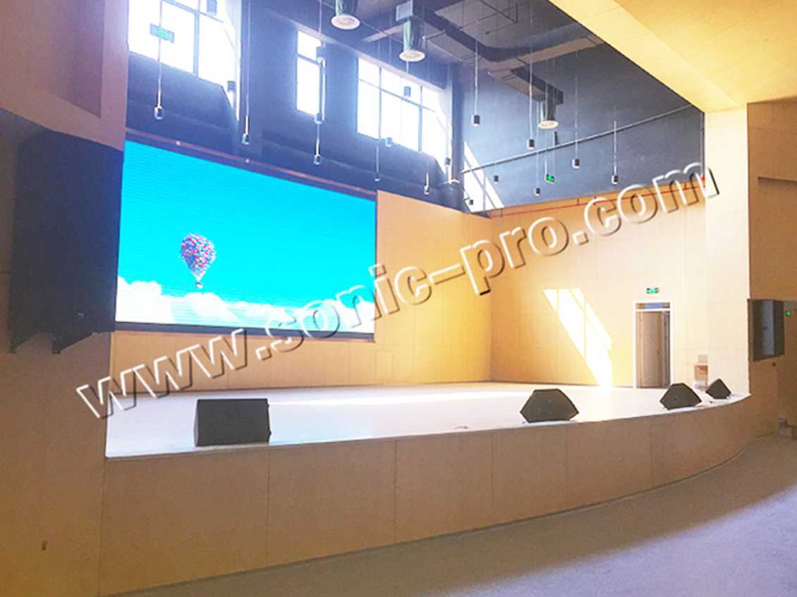 报告厅作为江南路中学的举行会议报告与小型演出的场所,甲方要求音响系统应在具备会议报告扩声功能的同时又兼具小型演出扩声的使用需求。即用一套音响设备实现"两个场所"的使用功能。