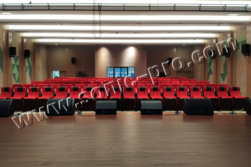 该报告厅主要用于举行大、中型会议,以及小型文艺演出活动。其扩声设备从使用功能上要满足多种活动的扩声要求。