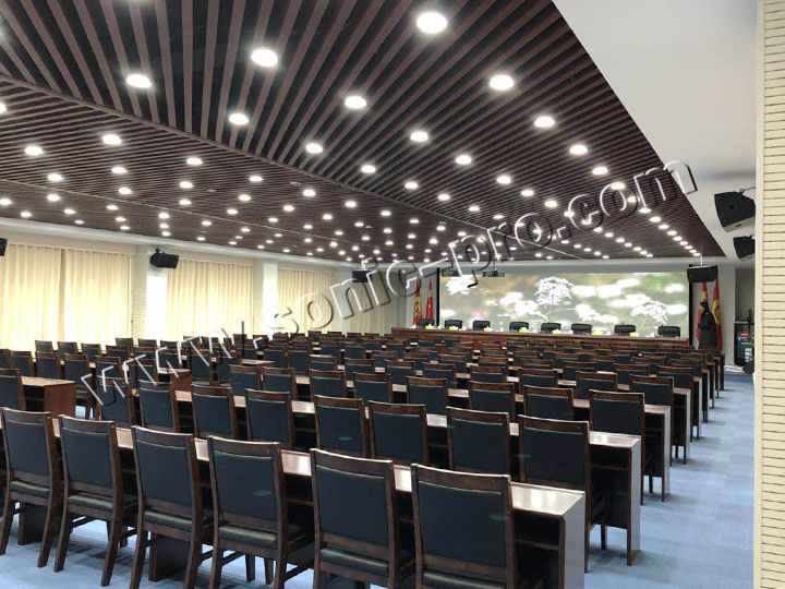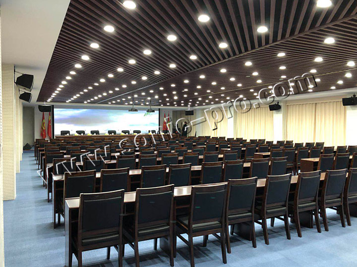 会议系统配合专业的扩声设备和音频处理设备使整个会场的效果更佳,音质更清晰。