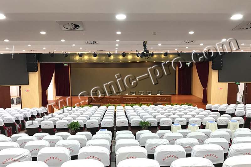 报告厅对于声场的设计比较严格,要兼具会场前、中、后的声压,而且,音频质量也要求非常高。