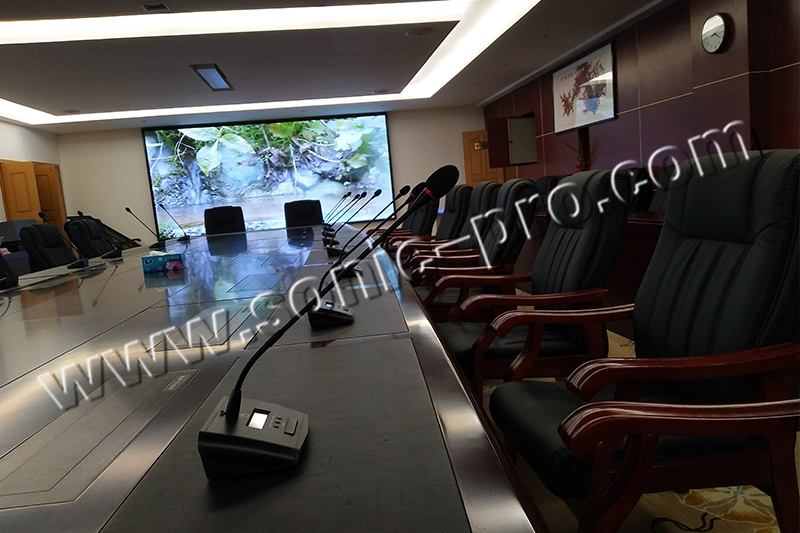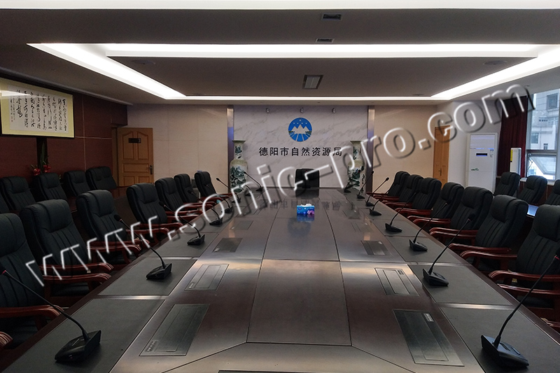 会议室音响系统以会议为主、兼顾演讲、报告等。会议室音响系统以满足报告、会议的同时应适当考虑演讲、音乐等多用途性。在偏长混响时间设置的情况下,小功率声源(如话剧,会议)需由电声系统提高直达声能,以保证足够的声压级和清晰度。