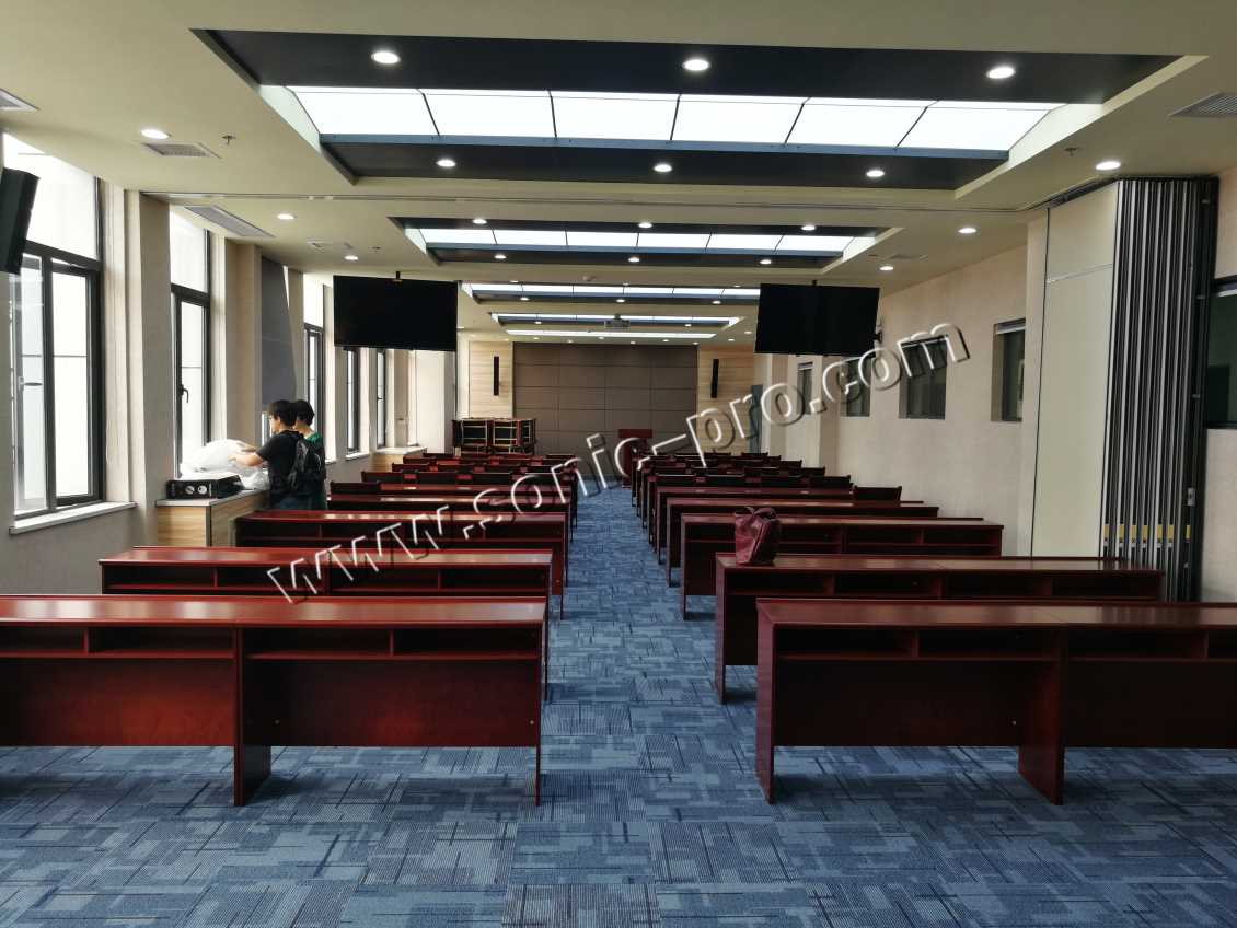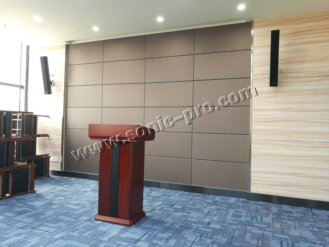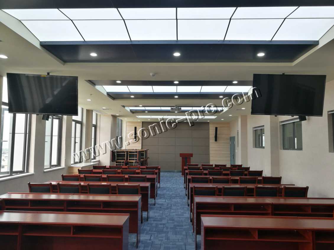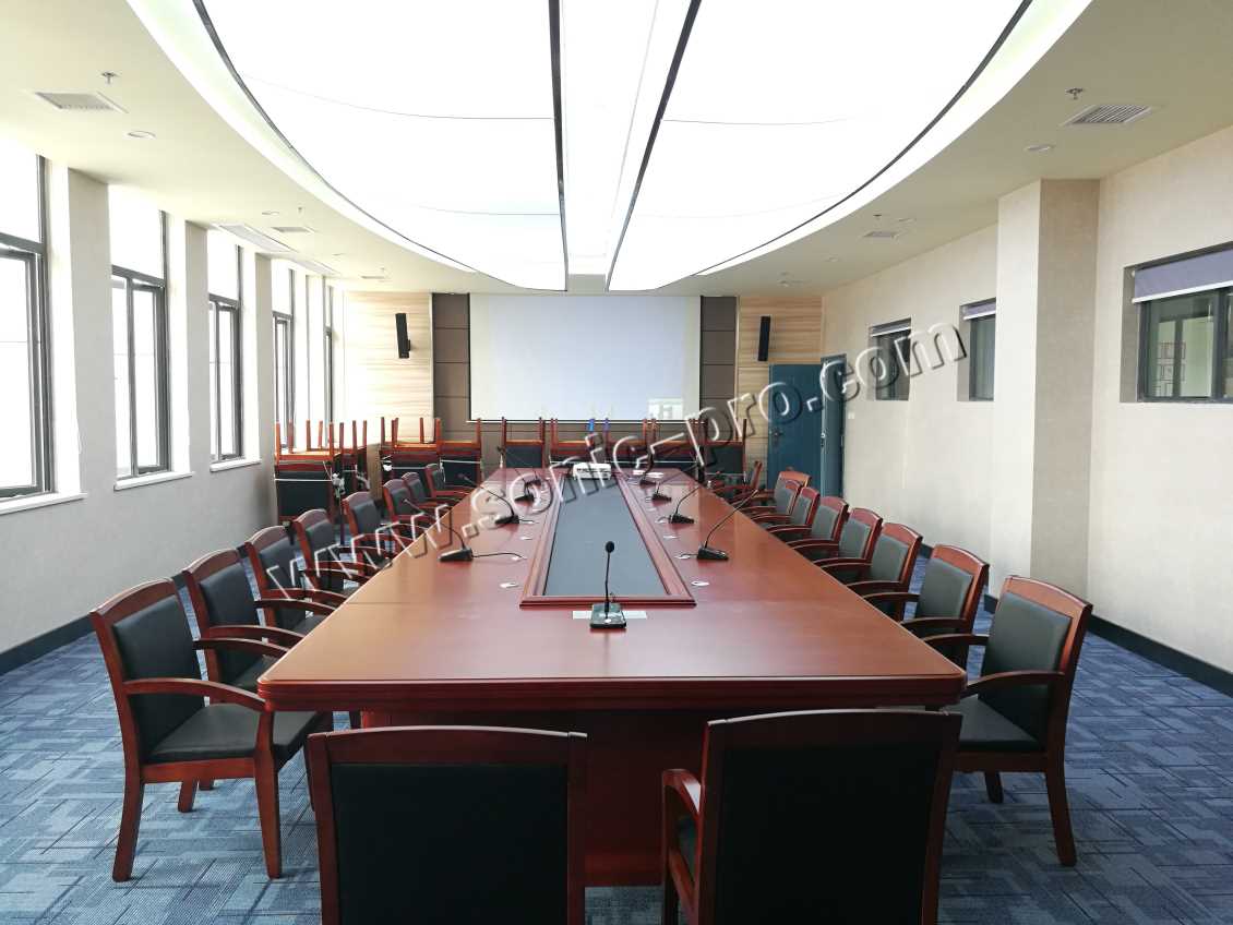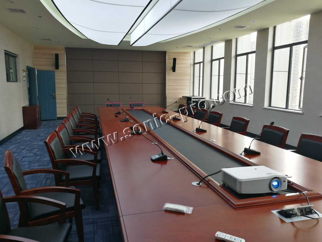本项目涉及武汉科技大学武钢楼10楼湖北省协同创新中心1004、1014会议室。本方案设计之初就以高品质扩声为前提,兼顾整体装修风格,采用小箱体、大功率、高灵敏度的音柱系统,且音柱采用了进口钕磁单元,保障音质。功率放大部分采用CLASS-TD类拓扑电路,拥有高效率功率转换的TD系列,其具有极高的效率,功率转换效率高达90%。混音部分采用MX系列调音台,轻松应对多路音源输入。音源部分:大会议室全部采用