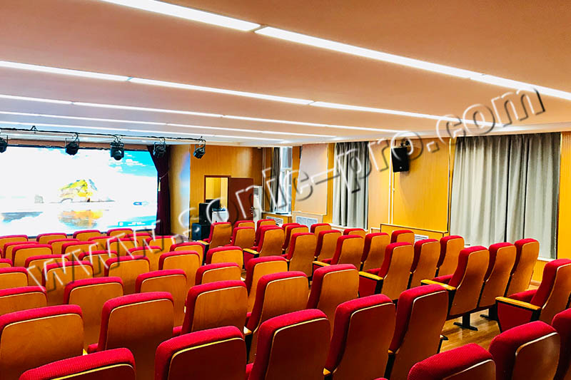 音响设备是报告厅的一个重要部分,高保真地将声音播放给观众是报告厅必备的条件。报告厅作为讲演使用时,则使用对语言声音还原好的音箱,将它们放置在报告厅两侧的墙壁上。
