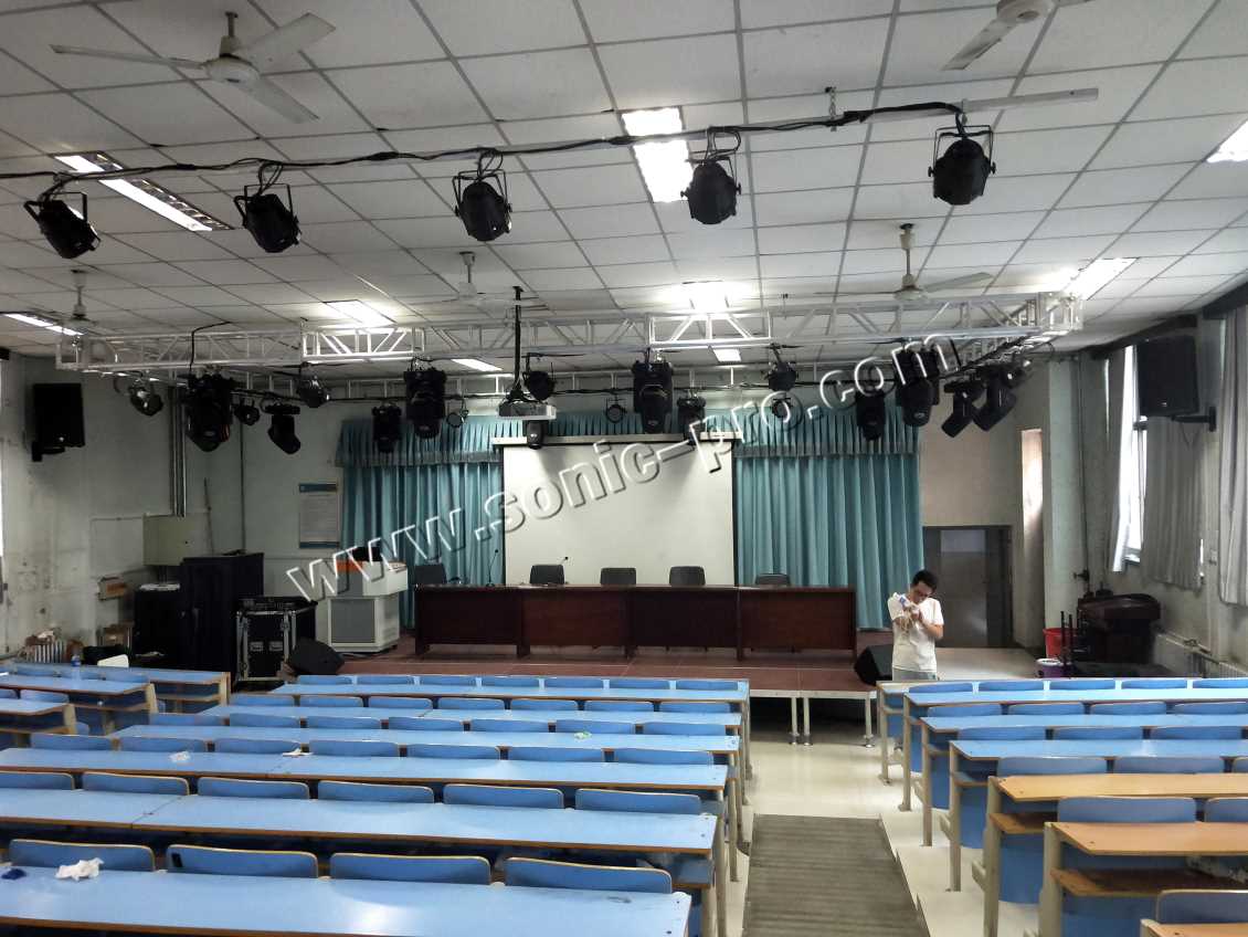 邢台学院,一所历史悠久的高等院校,首先来看一下学校的多功能报告厅。它对声音效果的要求,整个会场里面以自然声为最佳,声音能均匀扩散到每个与会人员的耳朵里,响度也不要太大,免得听觉效果差。再者就是发声者话语的清晰,以及音响系统的良好穿属性和最低的失真度,最后就是正常使用过程中的系统稳定性!