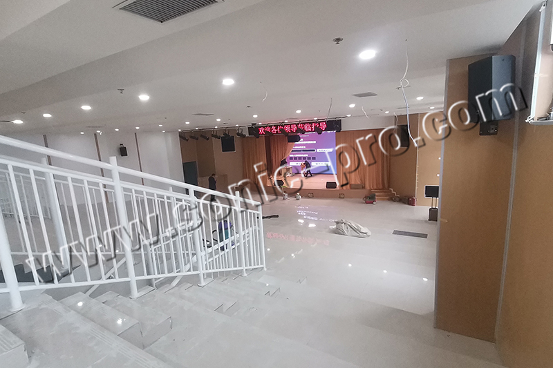 多功能厅使用特点是,面积较大,需要实现远距离,大声压的扩声