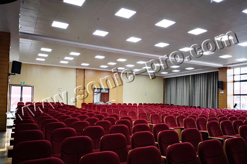 音响设备是报告厅的一个重要部分,高保真地将声音播放给观众是报告厅必备的条件。报告厅作为讲演使用时,则使用对语言声音还原好的陕西音箱,将它们放置在报告厅两侧的墙壁上。 通过对报告厅的布局环境分析,对音响设备进行合理的布置与连接,并安装以下的音响设备,使观众能感受到声源的真实存在,达到高保真重放的扩声要求。