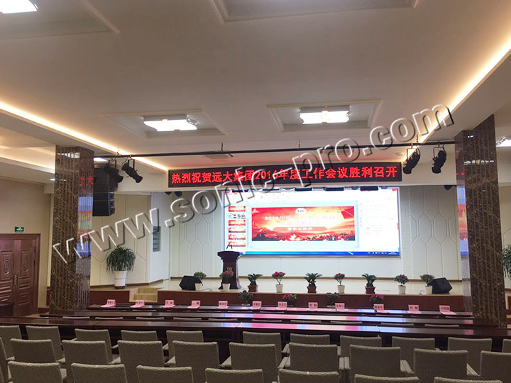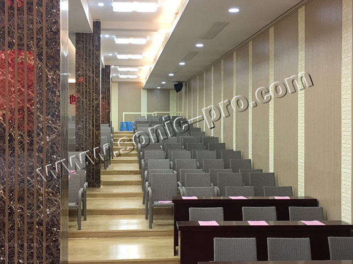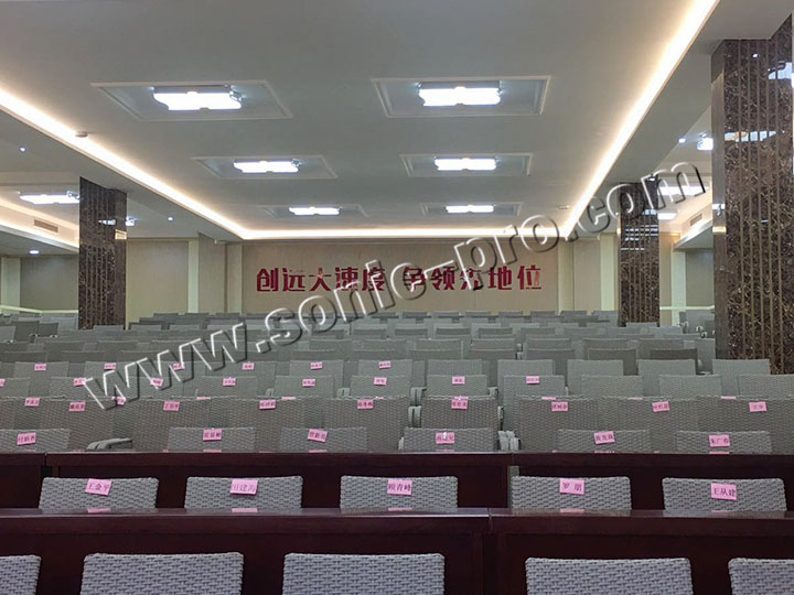 江苏省泰兴市远大集团多功能厅和阶梯教室扩声系统设备全部采用SONIC PRO(斯尼克)音响产品,左右主扩声采用8只双8寸线性阵列